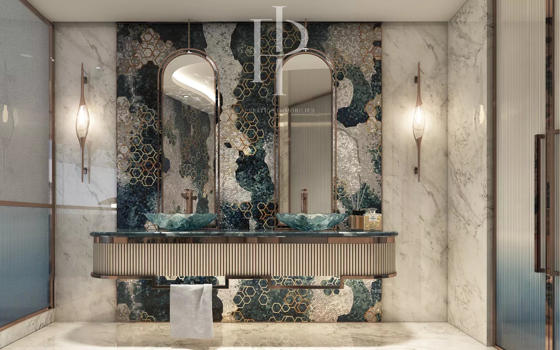 تصميم الشقة الداخلي يعكس الذوق الرفيع والفخامة مع لمسات عصرية وأناقة تتوافق مع أرقى المعايير. يأتي المطبخ مجهز تجهيزاً كاملاً بالأجهزة الحديثة، وتوفر النوافذ الكبيرة إطلالات بانورامية على البحر مما يضيف جواً من النقاء والهدوء.